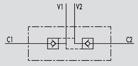 Подключение: Подключите V1 и V2 к напорным линиям, C1 и С2 к полостям цилиндра.